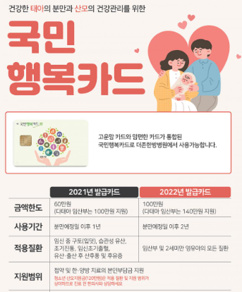 국민행복카드는 정부에서 제공하는 다양한 바우처 혜택을 하나의 카드로 받을 수 있는 카드입니다. 임신, 출산, 육아, 저소득층 지원 등 다양한 지원을 받을 수 있어 많은 국민들에게 필수적인 카드로 자리 잡고 있습니다. 주요 혜택으로는 임신·출산 진료비 지원, 기저귀·조제분유 지원, 에너지바우처 지원 등이 있습니다.